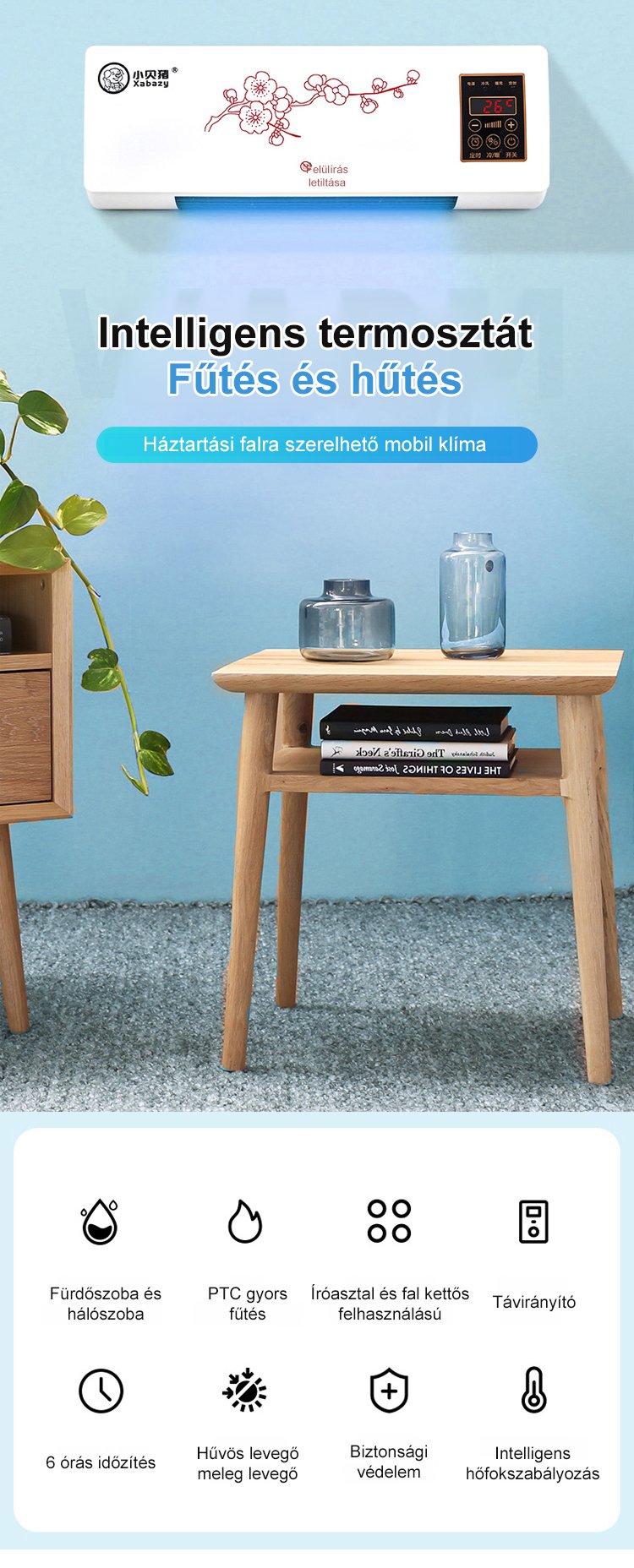 Háztartási falra szerelhető, hűtő-fűtő klímaberendezés